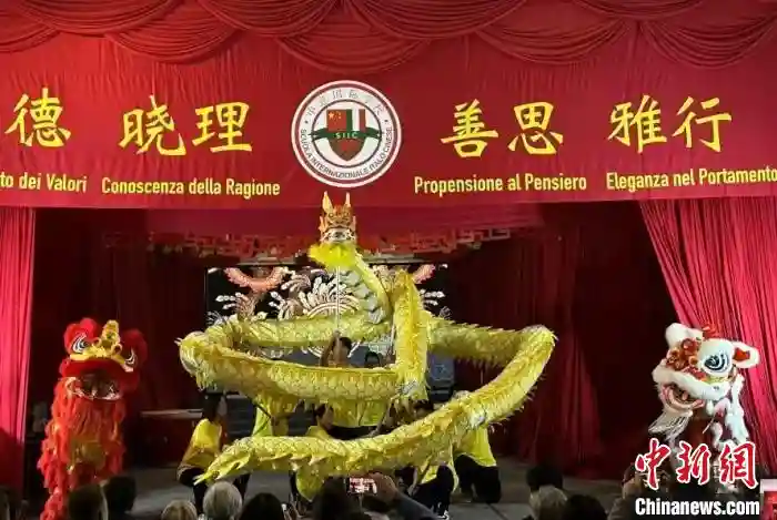 “中华文化大乐园帕多瓦营”日前在中意国际学校圆满闭幕,图为学生们表演舞龙舞狮。(受访者供图)