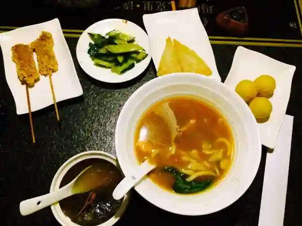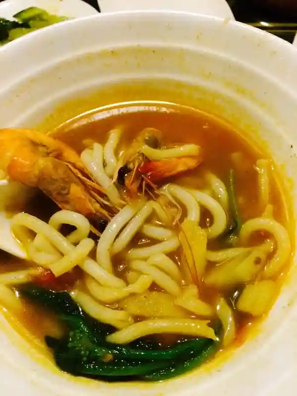 验证后,先让我到旁边换了鞋子,然后问汗蒸与泡澡房选哪个。由于节前刚汗蒸的于是选了泡澡房。24小时都有泰式美食可以享用。由于刚下班,我选择了先吃饭,休息一会后再按摩,再泡澡。餐厅有几款泰式套餐与小吃可以选择。选了菠萝鸡饭与冬阴面,面条个人很喜欢,套餐味道一般,有配乌鸡汤,泰式的肉串,榴莲酥等好撑啊。