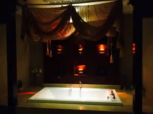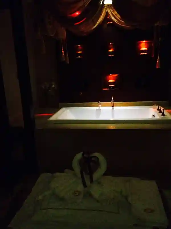 然后让服务员帮忙上水,跟放水泡澡。可以泡牛奶浴与盐浴两种。我选择了一起,浴缸上套个一次性塑料袋,这样也保证了泡澡的干净性,十来分钟就全身冒汗了,再休息一会,冲凉下回家休息。