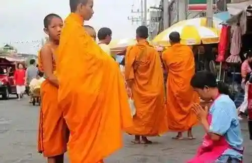 4,在泰国,僧侣的地位非常高,法律规定,僧侣如果出去化缘募捐,对方如果不施舍钱财或物品,属于违法行为。当地人一生都要出家一次,他们以出家为荣,出家期间,政府每月都给补贴,有的人已经结婚了,还要去出家,如果不想当了,随时可以还俗。[微风]