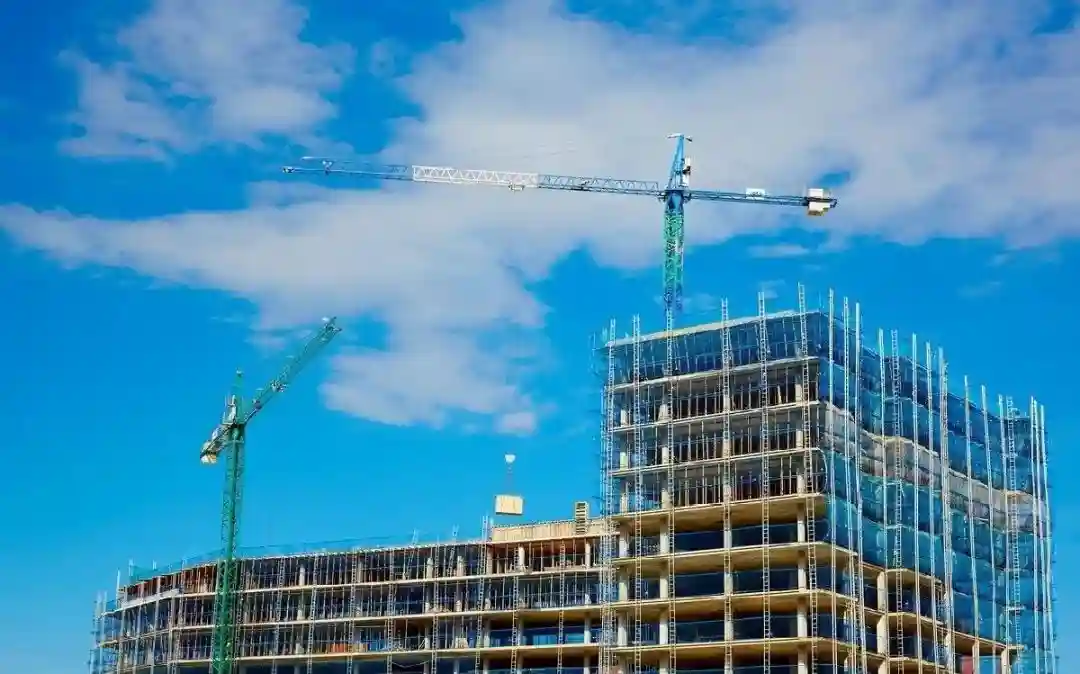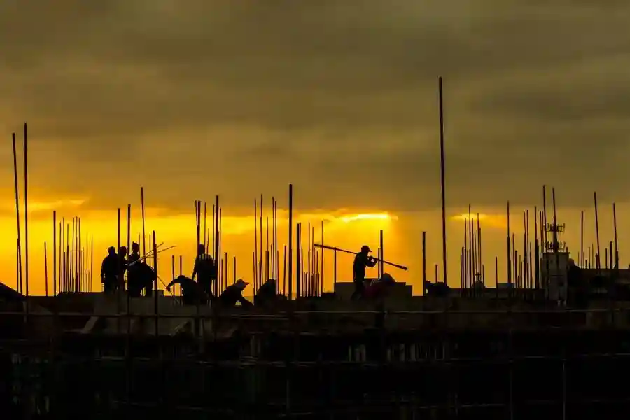 在建筑工人作业的背后