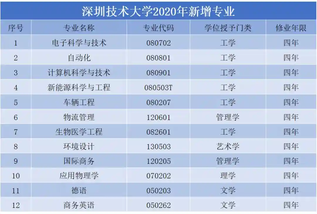 记者今日从深圳技术大学获悉,2020年深圳技术大学将在机械制造及其自动化、物联网工程、光源与照明、交通运输、汽车服务工程、工业设计等6个专业的基础上新增12个专业,开始招收文科生,届时招生专业将达18个。
