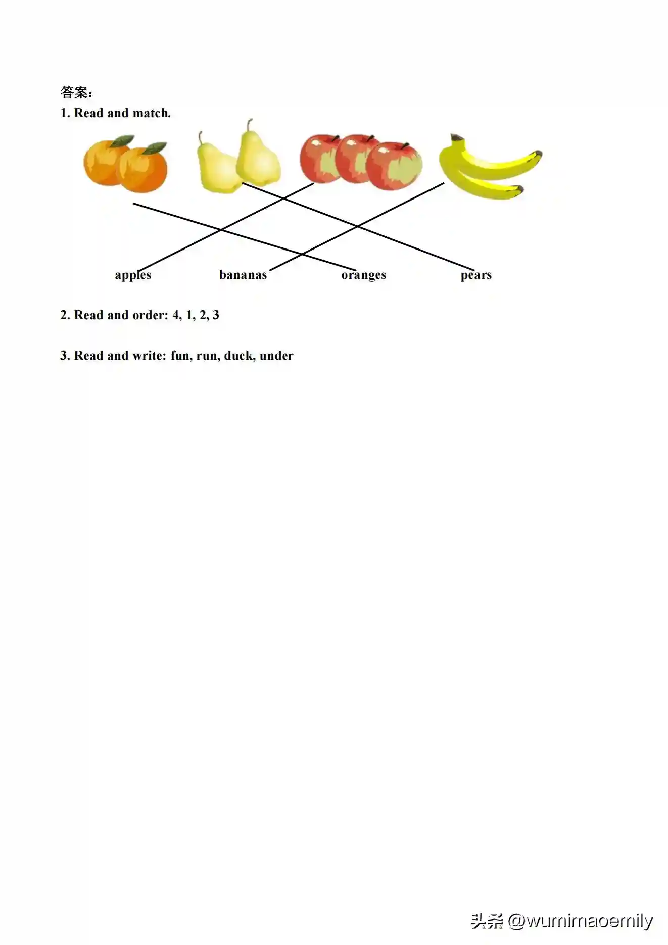 (3)了解元音字母u在单词中的短音发音/ʌ/,本单元含有元音字母u的单词有:fun,run,duck,under。