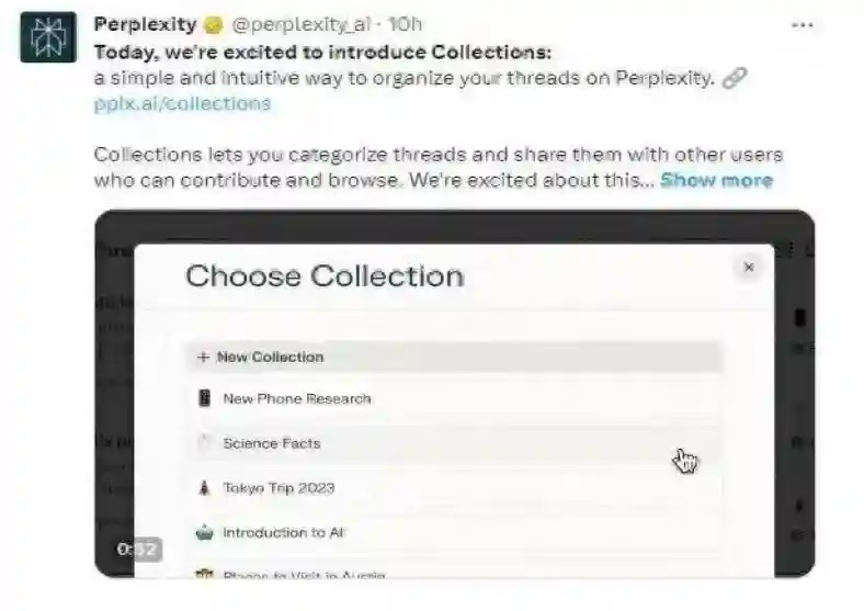 Perplexity有望打造知识平台,成为生态入口。基于对话式搜索引擎,Perplexity支持用户将搜索问题及答案分享至社区,供其他用户学习讨论。2023年9月,公司发布Collections,可以根据项目、主题或其他分类创建收藏夹,整合梳理查询对话并拓展新问题,还可以邀请其他参与者协作管理Collections,创建知识共享平台。随着Collections、pplx-api等业态的逐步成熟,我们认为Perplexity有望建立特定社群,进一步夯实对话式搜索引擎的领先生态优势。