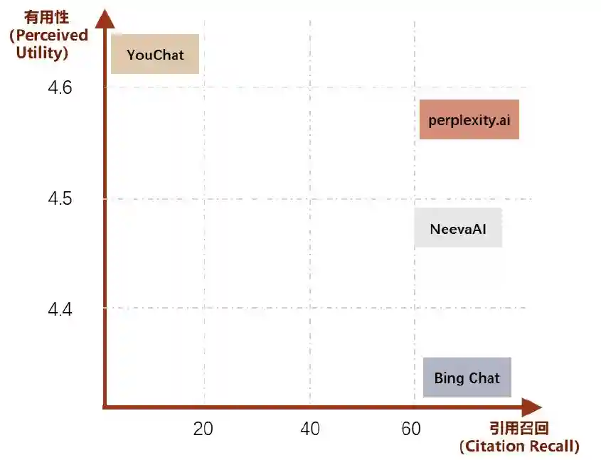 注:1)有用性(perceivedutility):回复对用户查询来说是否是有用且有信息量的;2)引用召回(citationrecall):指由其相关引文完全支持的、值得验证的句子的比例。