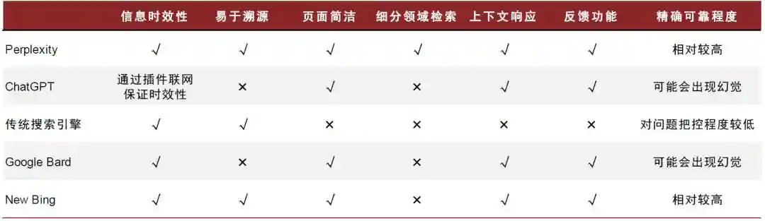 图表8:Perplexity与ChatGPT、传统搜索引擎差异化定位