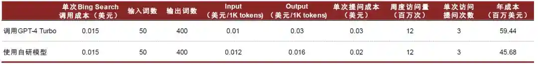 注:1)英文词数与tokens转换比例为750words-1000tokens;2)综合未来成长性假设周度访问量为120万次;3)假设单次访问提问次数为3