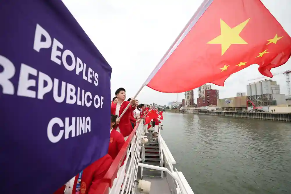 7月26日,巴黎奥运会大幕拉开,马龙和冯雨高擎五星红旗,闪耀塞纳河。