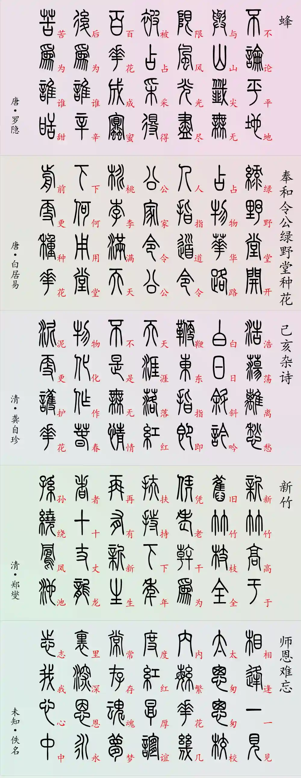 桃李满天下、采得百花酿成蜜、落红化成春泥更护花、旧竹扶新竹,这些经典的意象,都是用来歌颂老师们的。