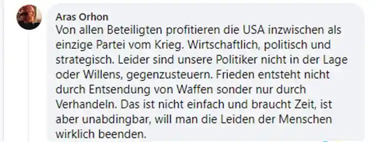 “他们希望战争继续下去以出售更多的武器。”德国网友也表示,美国是战争中唯一一个从各方获益的国家,包括经济、政治和战略层面。“可惜我们的政治家们既无能力也无意愿加以抵制。”海外网友道破美国在这场危机中的利益所在。