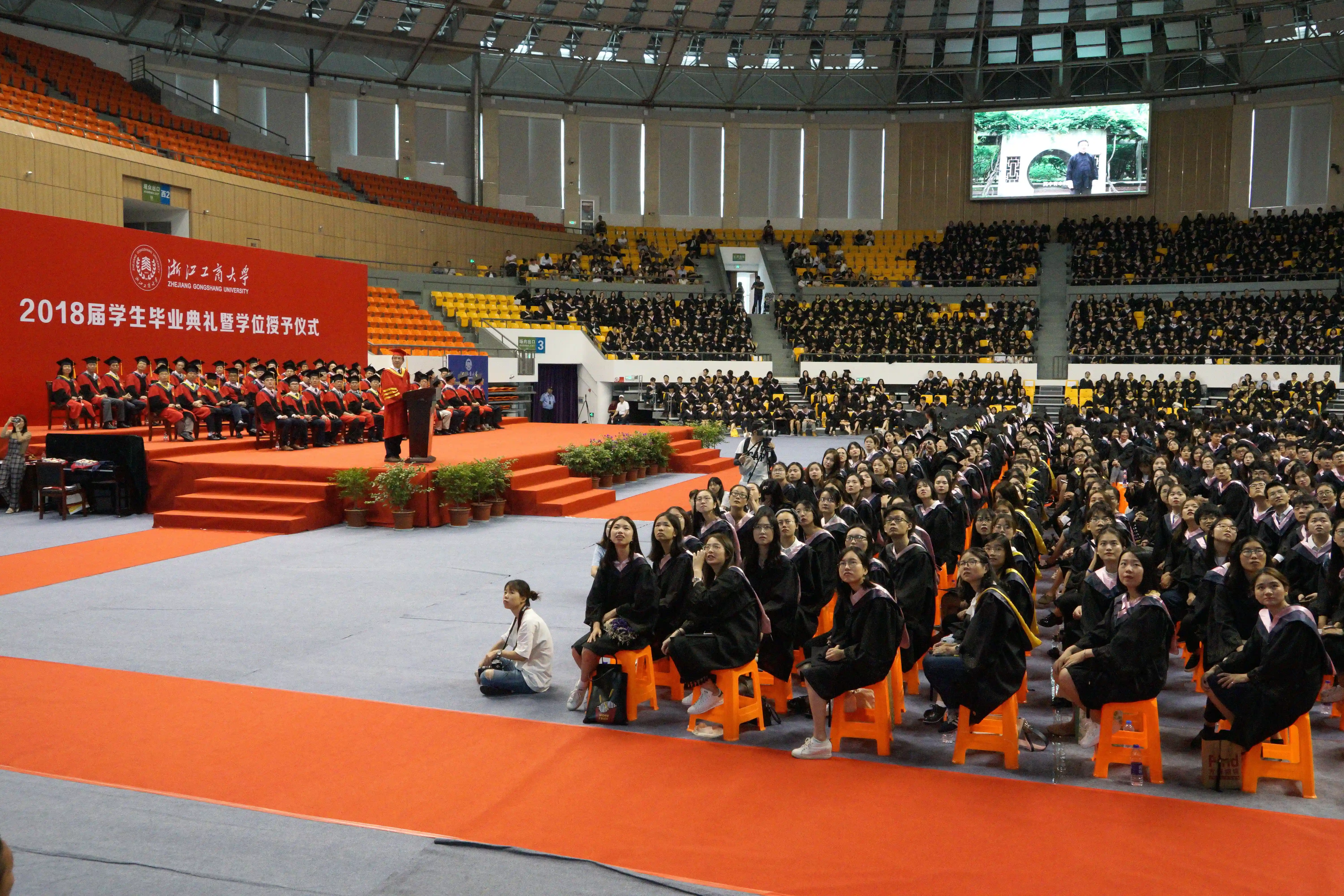 今日(6月21日)上午,浙江工商大学2018届毕业典礼暨学位授予仪式在学校的文体中心举行,4360名毕业生身着学位服参加大学生涯最后的告别典礼。在表彰优秀毕业生、毕业生代表发言后,校长陈寿灿出场,立刻响起了热烈的掌声。