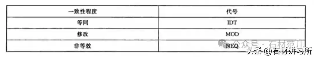 表给出了采用国际标准方法和一致性程度的对应关系。