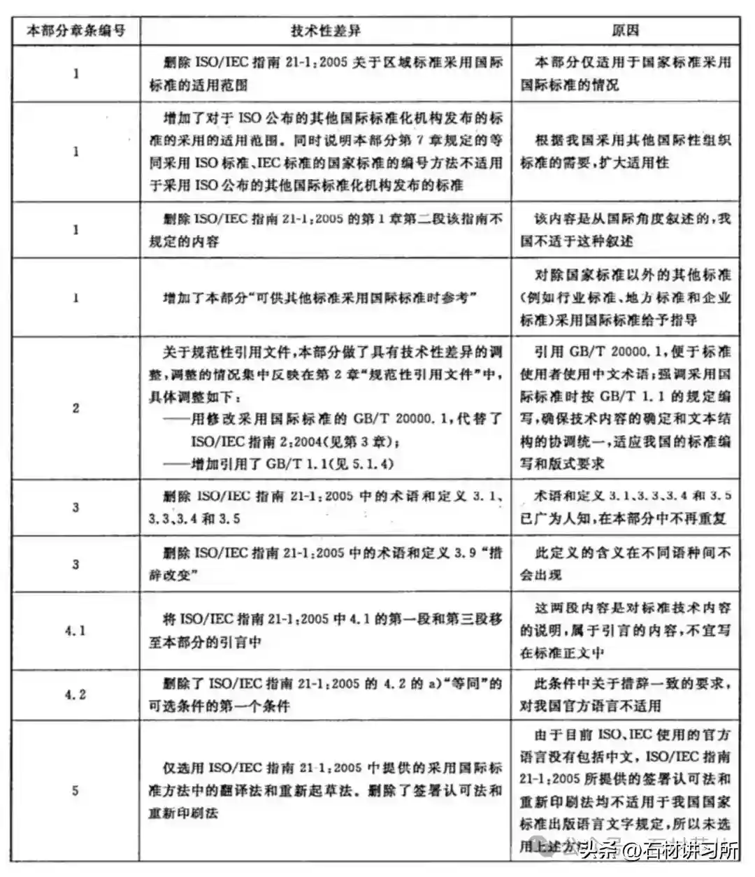 一项国家标准应尽可能采用一项国际标准。个别情况下,只有当使用列表形式清楚地说明技术性差异及其原因并很容易与相应国际标准的结构进行比较时,才允许一项国家标准采用若干项国际标准。“修改”可包括如下情况:
