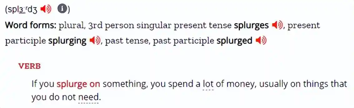 splurgev.乱花(钱);挥霍(尤指购买奢侈品)