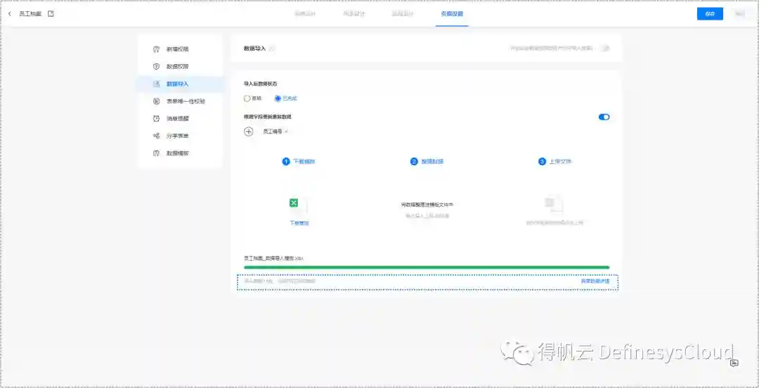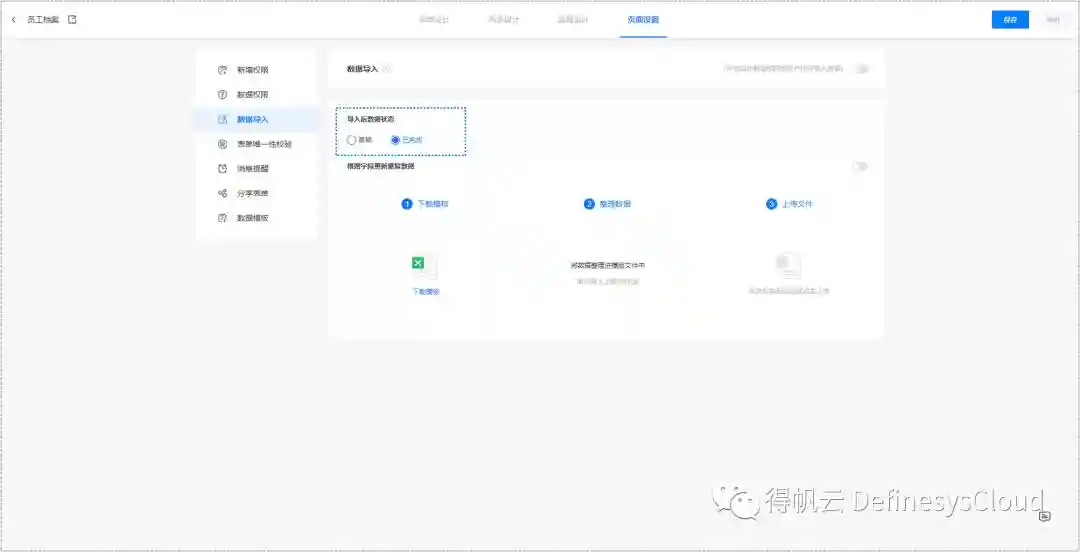 设置导入后的数据状态,可选择保存为草稿或已完成的数据。这里我们选择导入后的数据状态为已完成。
