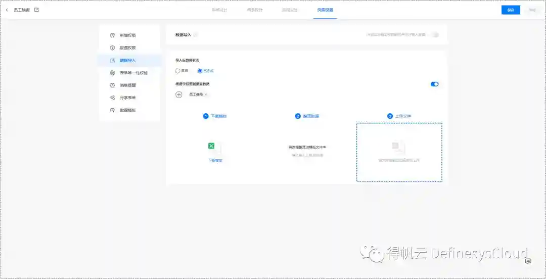 刚开始使用得帆云的人事部门人员,希望将已有的Excel表格中的员工数据导入得帆云平台。使用数据导入功能,快速批量导入员工数据。