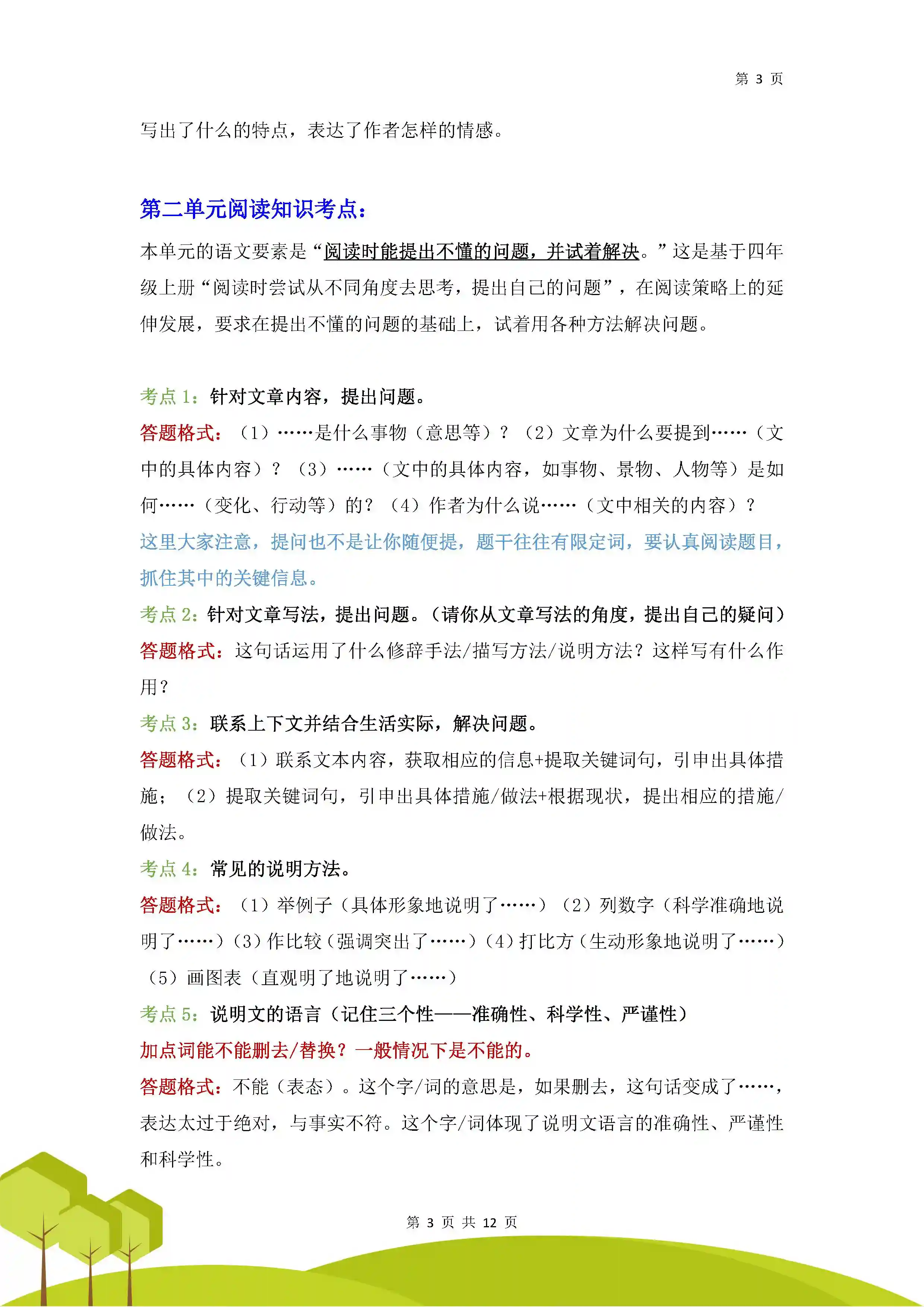 这些注意点涵盖了对文章的理解、关键信息的提取、逻辑结构的把握以及细节的精确掌握,旨在全面提升学生的阅读理解能力。