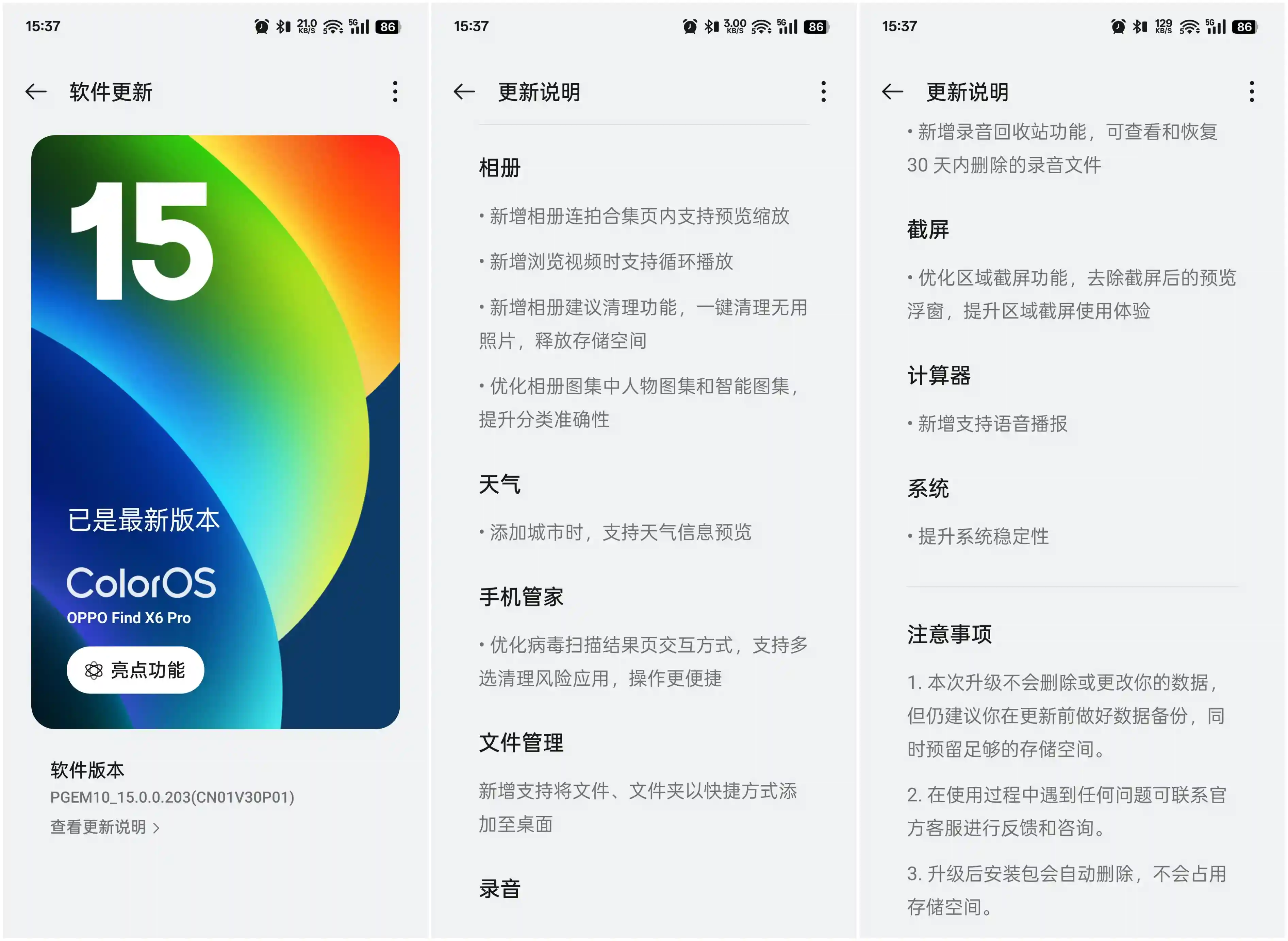 随着科技与网络的发展,手机已渗透至生活的方方面面,使用越来越频繁,使用场景也越来越广泛,用户要求也越来越高。由原来将就「能用」,逐渐过渡到「好用」,再到贴合用户使用习惯的「专用」。ColorOS15通过多种被动技能,在不知不觉间悄然改善用户的用机体验。如果有进一步的需求,还可尝试自主性更大、更为智能的「小布指令」。如今来到新的一年,ColorOS15不仅继续维持上代每月至少一到两波的推送速度,还公布一月份的正式版升级计划,距离全面覆盖又近一大步。不但保住「OTA之神」的称号,而且让「ColorOS15宇宙」的成员变得越来越多。前两天迢迢和家人的FindX6Pro和FindX7Ultra先后收到更新,在好用和易用性上更进一步。期待后续的版本,ColorOS能继续「听劝」,依旧保持丝滑流畅好用的势头,让用户充分享受科技带来的便捷生活。