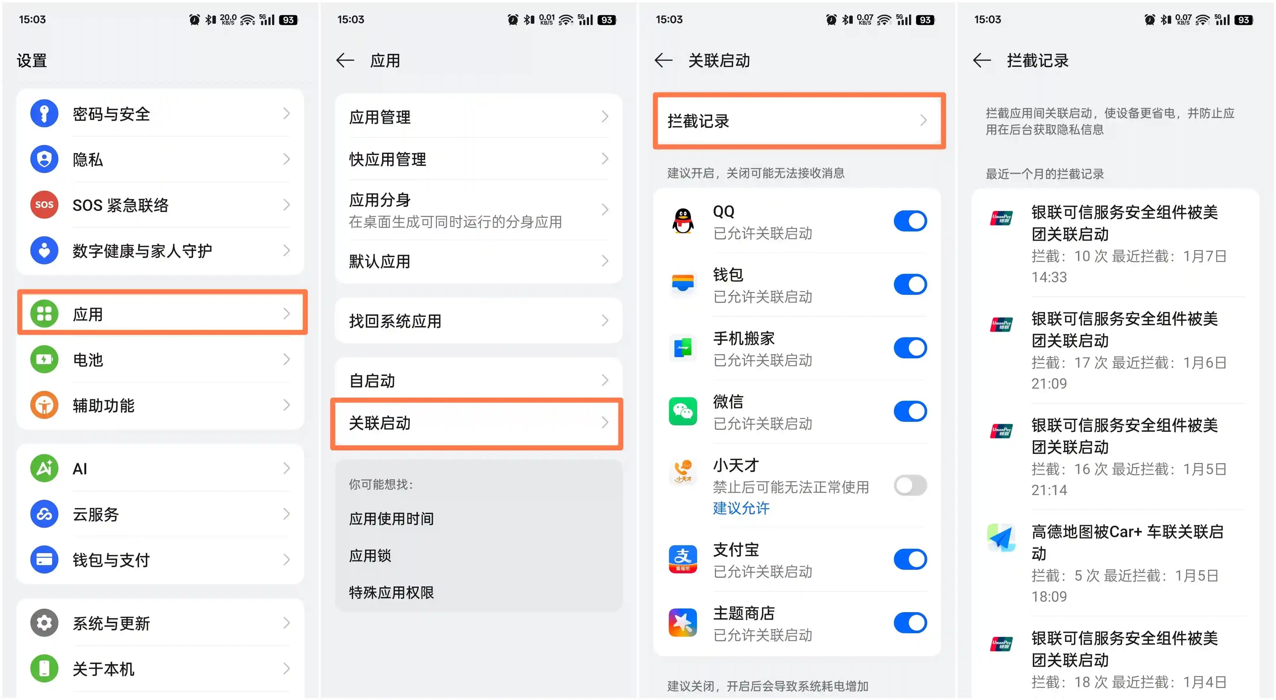 设置方法:进入「设置」——应用——关联启动