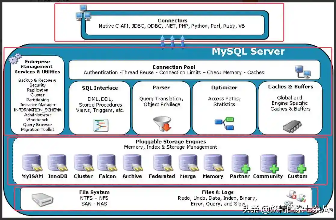存储引擎层存储引擎层是innodb了,比如数据要如组织和存放,索引要如何建立和管理等等,加锁怎么加,事务如何实现,都是这一层要考虑的内容。