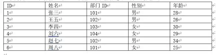 我们以某公司的员工信息表为例,该公司的员工信息可以用一个表格存起来。并且定义如下: