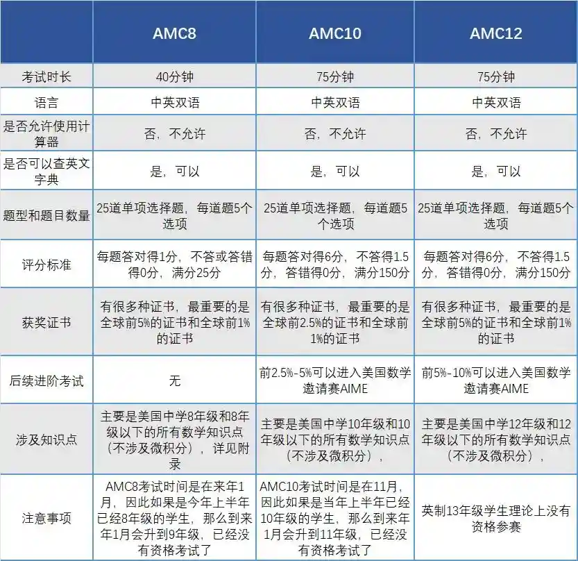AMC竞赛针对不同年级分别设置了AMC8、AMC10、AMC12竞赛以及进阶赛AIME。
