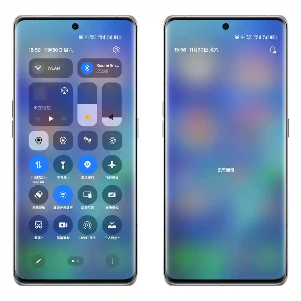 ColorOS15将控制中心和通知中心进行了分开,这样的设计使得用户在使用手机时更加便捷,可以更快地访问到需要的功能,同时也避免了信息堆积在一起导致的混乱。