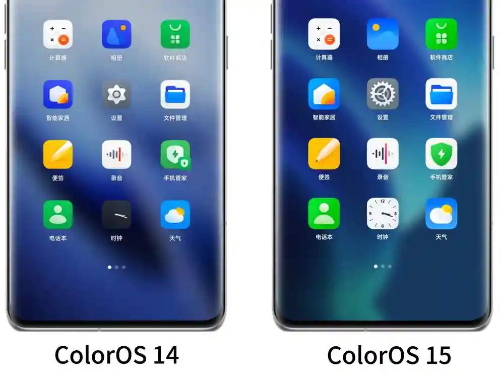 以前的ColorOSUI设计风格更加扁平化,图标和字体设计相对简单,而在ColorOS15中,更加注重细节和质感,融入了更多的视觉元素,使得整体界面更加精致。