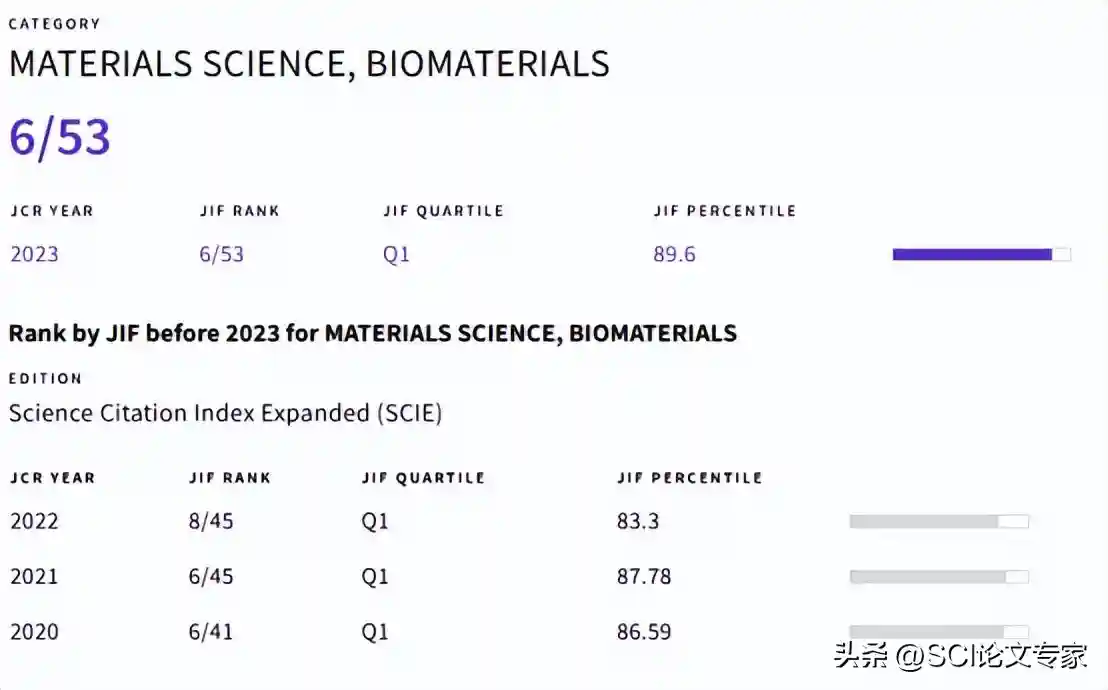 学科排名:按影响因子来看,该期刊在材料科学,生物材料期刊中,位居第6.