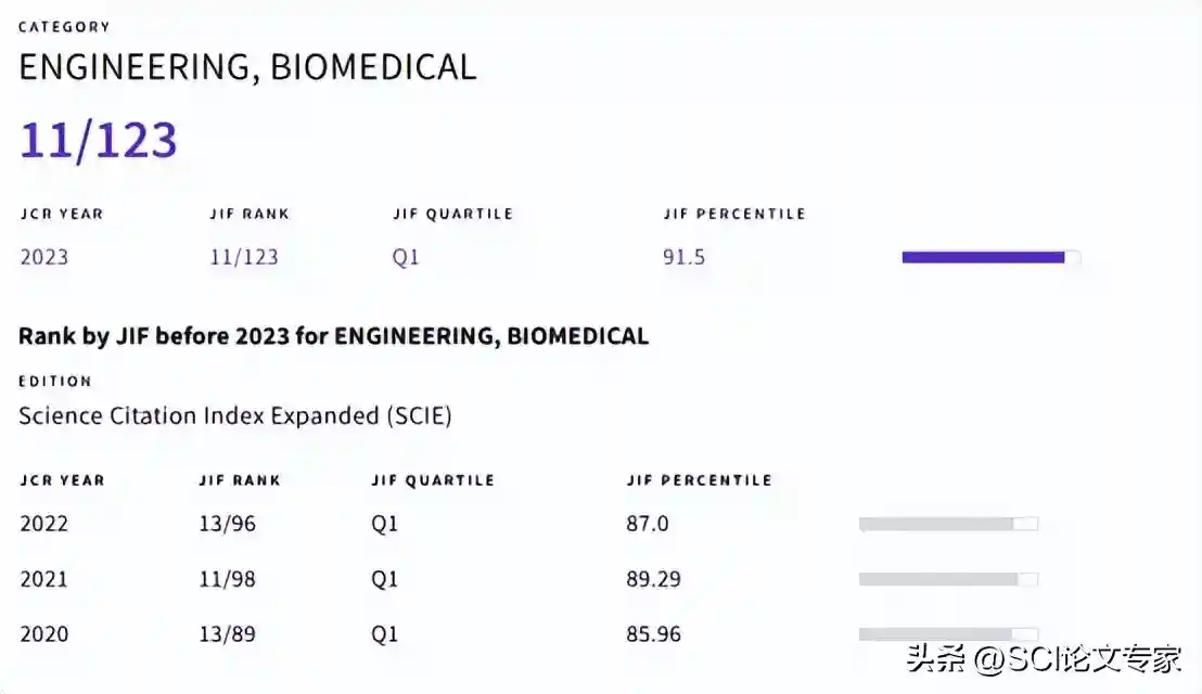 按影响因子来看,该期刊在工程、生物医学期刊中,位居第11.