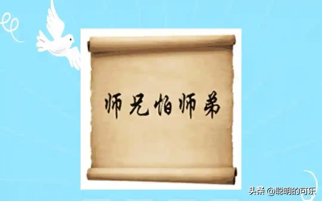 识图:师弟后出生,可畏师兄怕。