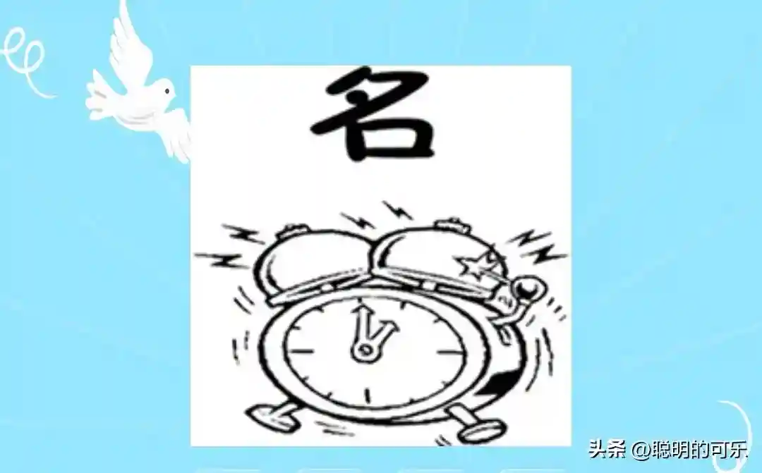 识图:白底黑字一个名,震铃大响指一时。
