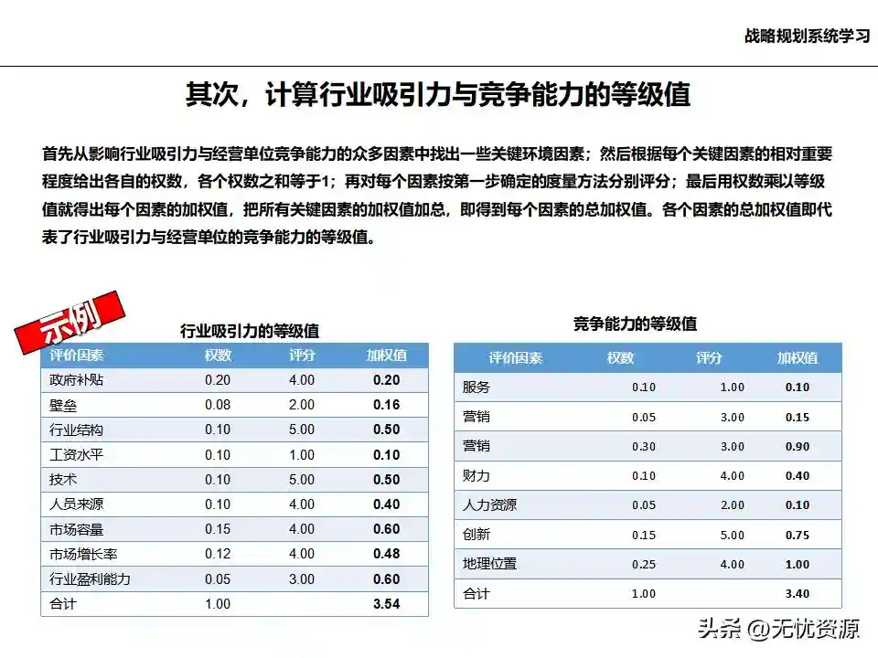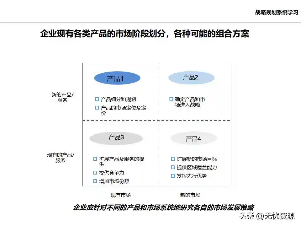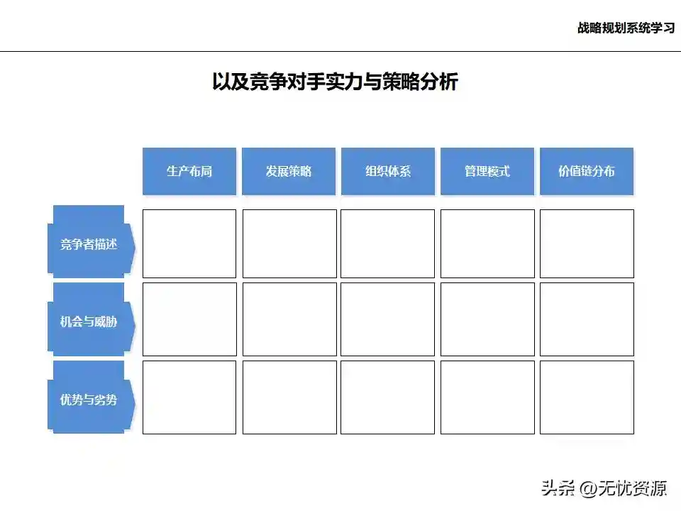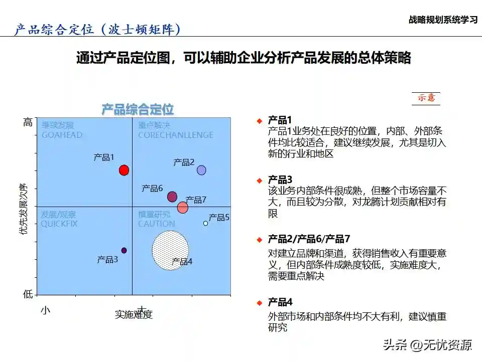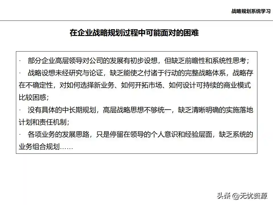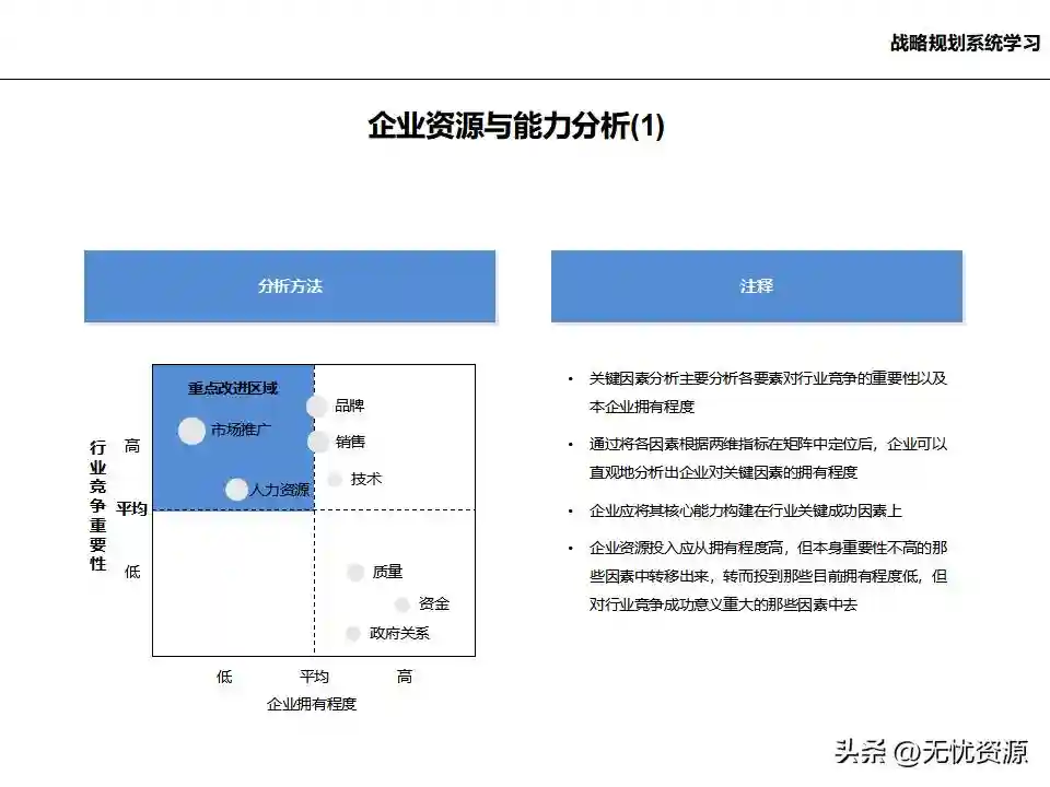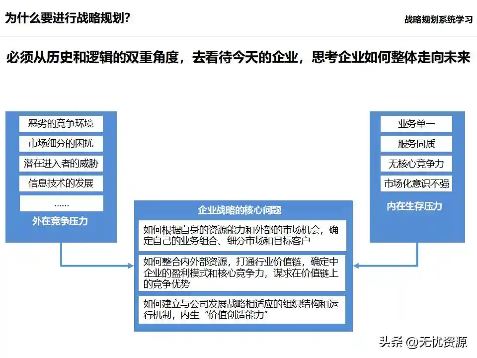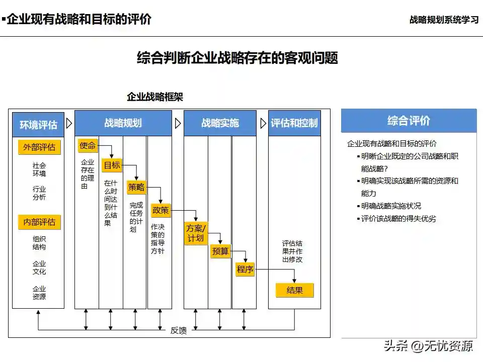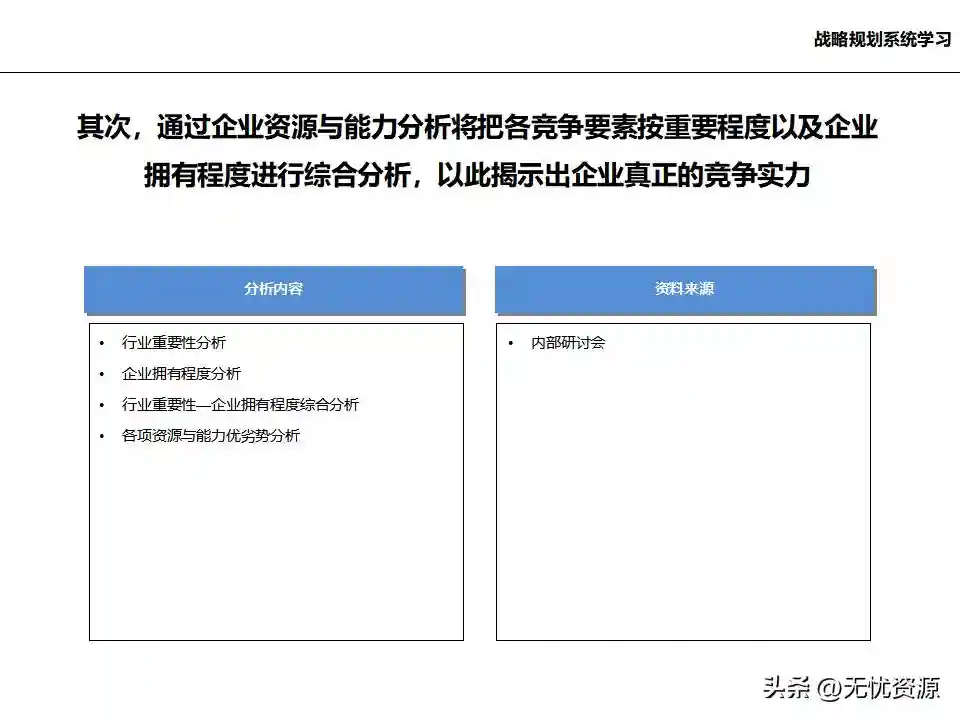 (二)战略规划方法战略规划方法包括PEST分析、SWOT分析、五力模型分析、波士顿矩阵分析等。这些方法工具帮助企业明晰自身所处内外部环境、战略定位等,在此基础上逐步提出企业总体规划、保障体系、战略举措及行动计划,形成完整的战略管理体系。