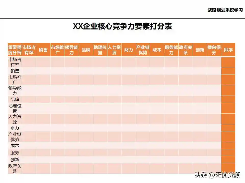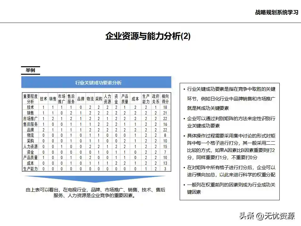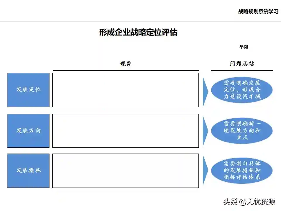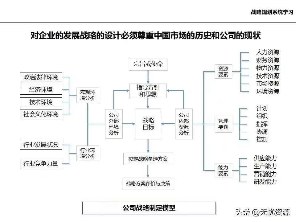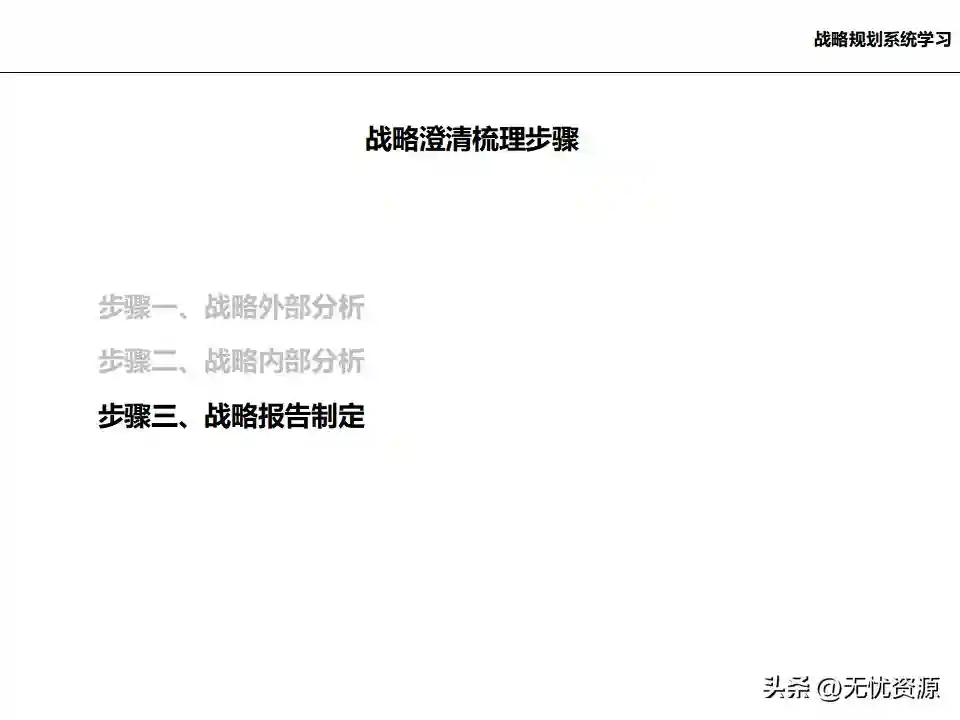 (四)基于内/外部分析结论,确定企业发展战略、核心能力和竞争优势基于内/外部分析结论,确定企业的远景、使命和价值观,明确企业中长期的经营方向。通过战略方案评估、战略方案选择、战略方案的调整与改进,最终确定企业发展战略框架。