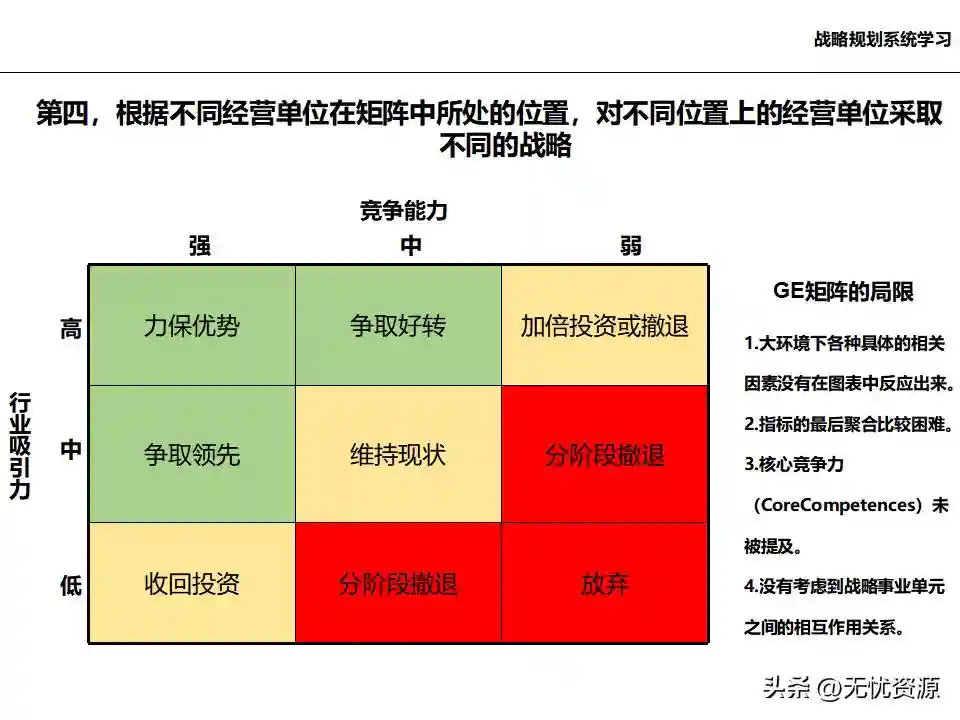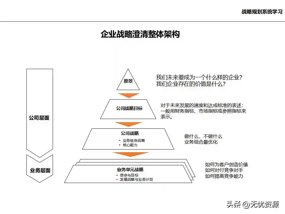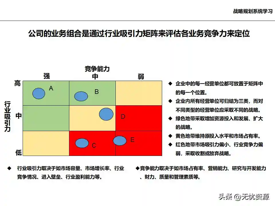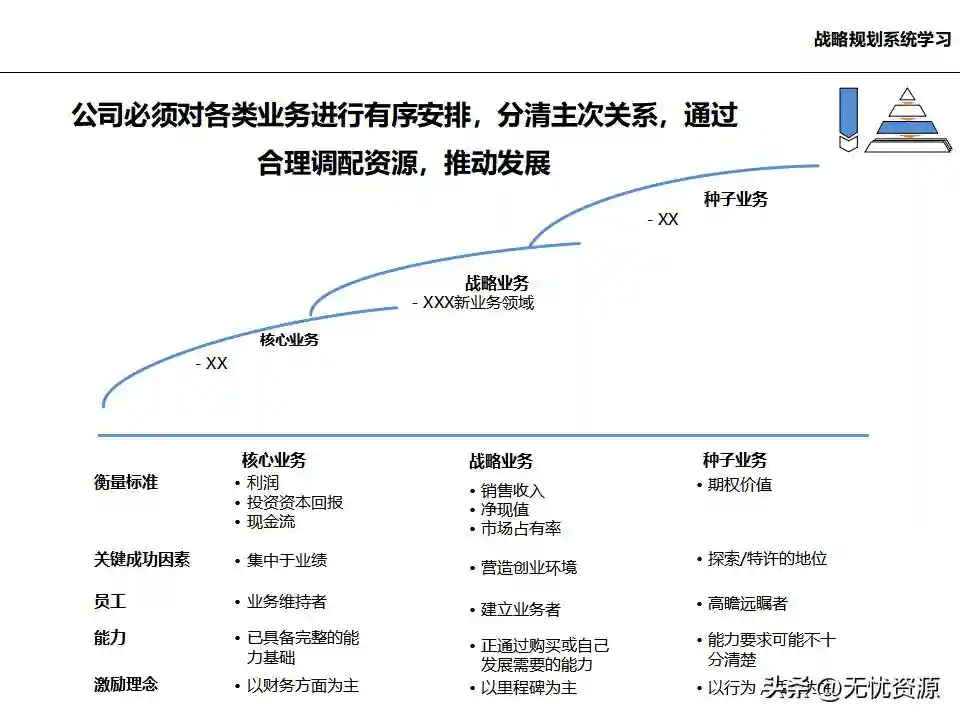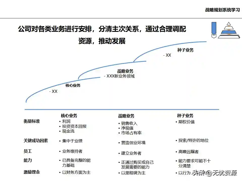 (五)在总体发展战略指导下,明确各业务单元的发展任务和结构关系在总体发展战略指导下,明确各业务单元的发展任务和结构关系。这包括业务单元的界定和构成、业务板块的划分设计、各业务单元的战略定位、业务组合规划、业务调整计划等。
