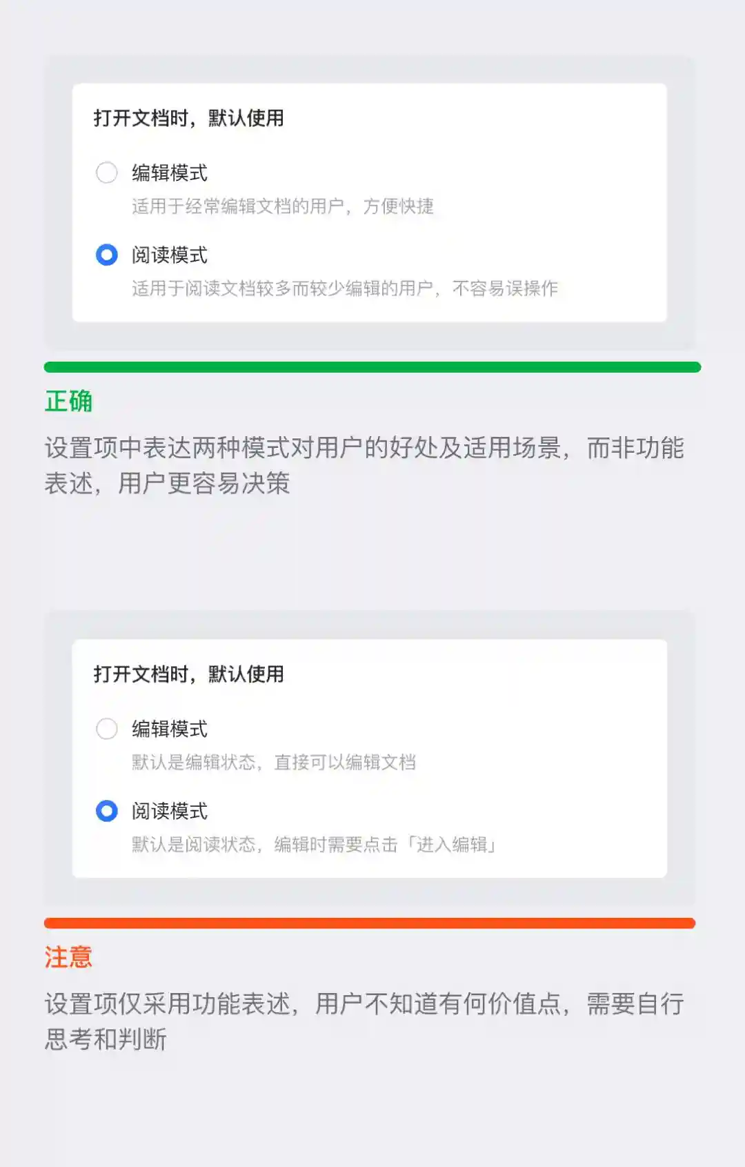 无论功能默认开启或关闭,设置项都应该表述为开启功能带来的结果及价值。