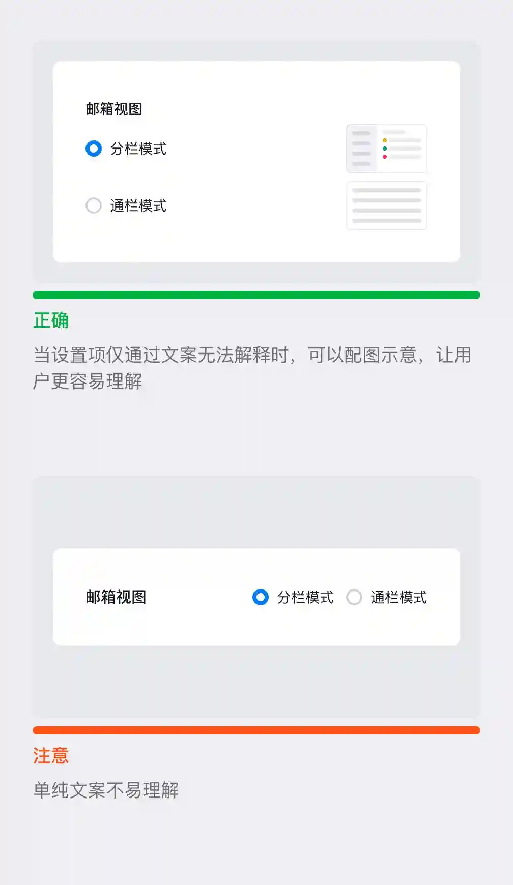 有些设置通过文案无法精准描述,可以采用图文结合的方式,让用户更有体感。