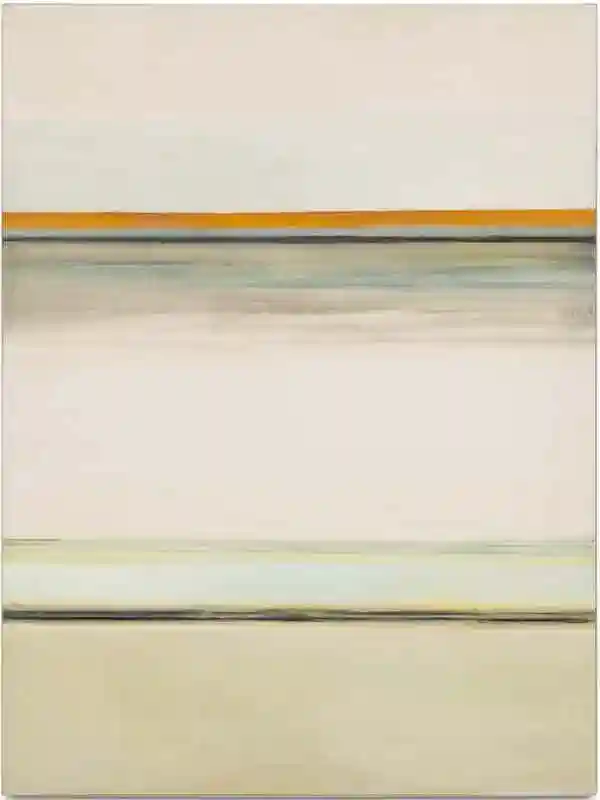 在维多利亚米罗画廊,你将看到海达·斯特恩最令人赞叹的作品之一。画布上层层散落着几条色彩明丽的水平线条,与背景中散发着乳白色光芒的各种白色、奶油色和灰色形成对比,共同演绎出了连绵不绝的海岸线向远处无限延伸的视觉体验。在抽象绘画中,水平线往往象征着地平线,而斯特恩进一步放大了这种艺术化的浪漫视觉效果,在她的脑海中创造了无穷无尽的海市蜃景,并在画布上描绘出了这种在现实中不可能存在的美丽景象。