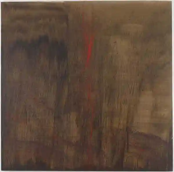 展览中,最令人惊讶的或数美国艺术家PatSteir的那幅美丽的“SeptemberNorthChinaSea(九月北海)(1994-95)”,由纯粹的重力和液体制成的一连串墨点被挥洒在棕色的画布上,书法,雨水,水彩画,代表中国的新红色位于画面中央。这幅画蕴藏着广阔的文化、地理和气候元素。Steir现年78岁,仍然在创作出杰出的作品。