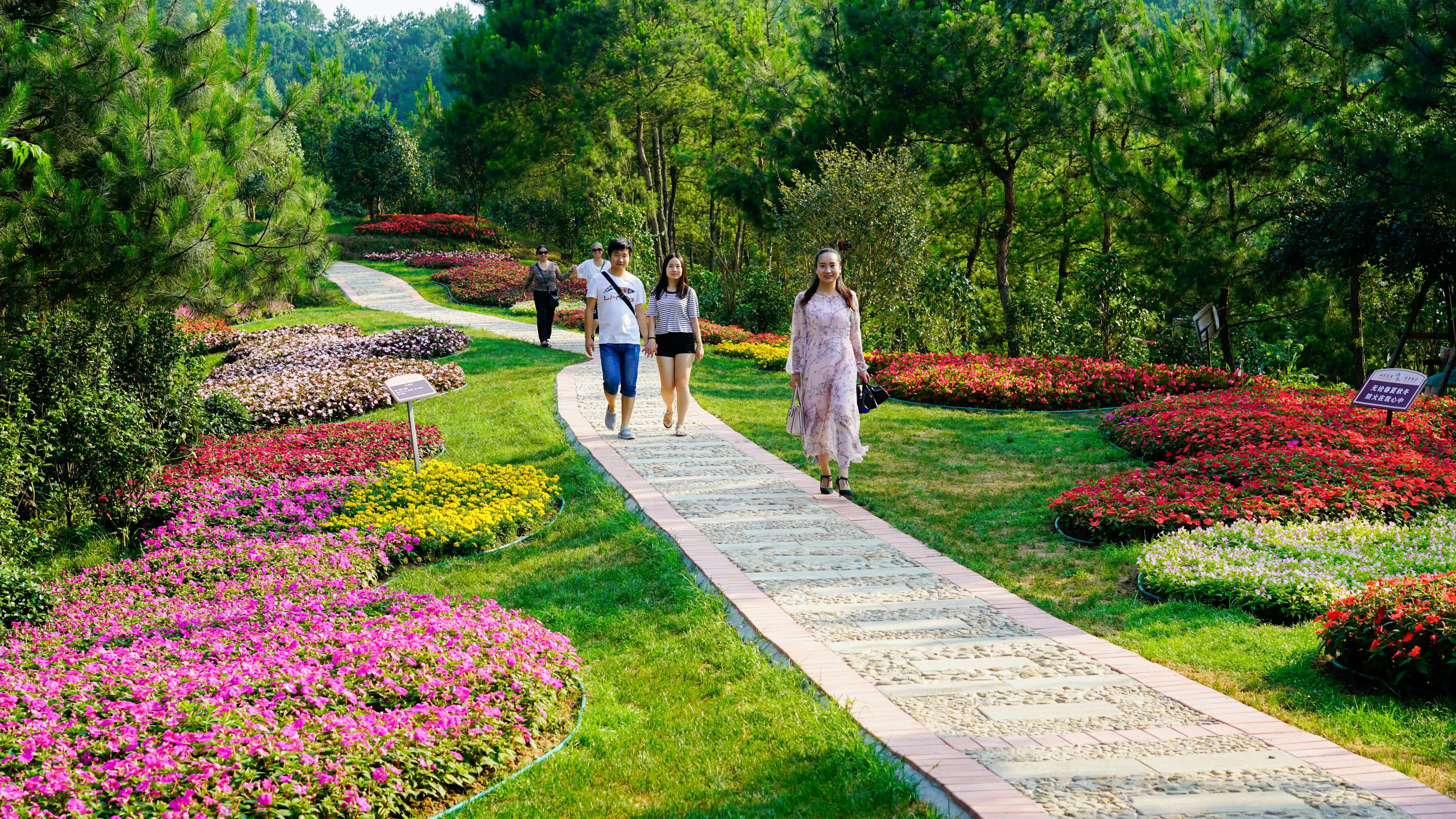 走在花海曲径的小路上
