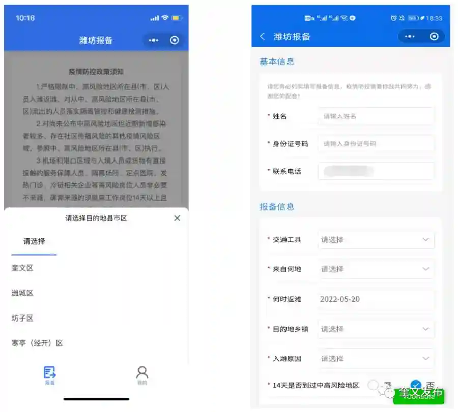 为有效防范疫情输入和传播风险,实现外来人员有序入潍返潍,更好保障广大人民群众生命健康安全,潍坊实行入潍返潍人员网上登记报备制度。