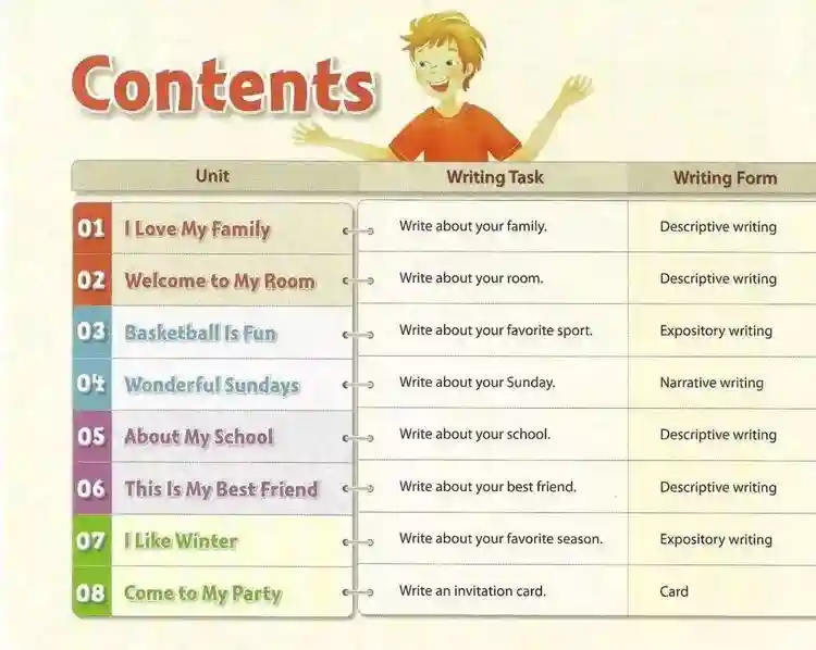 小学写作课课本《WriteRight》,欢乐明快的美漫风格: