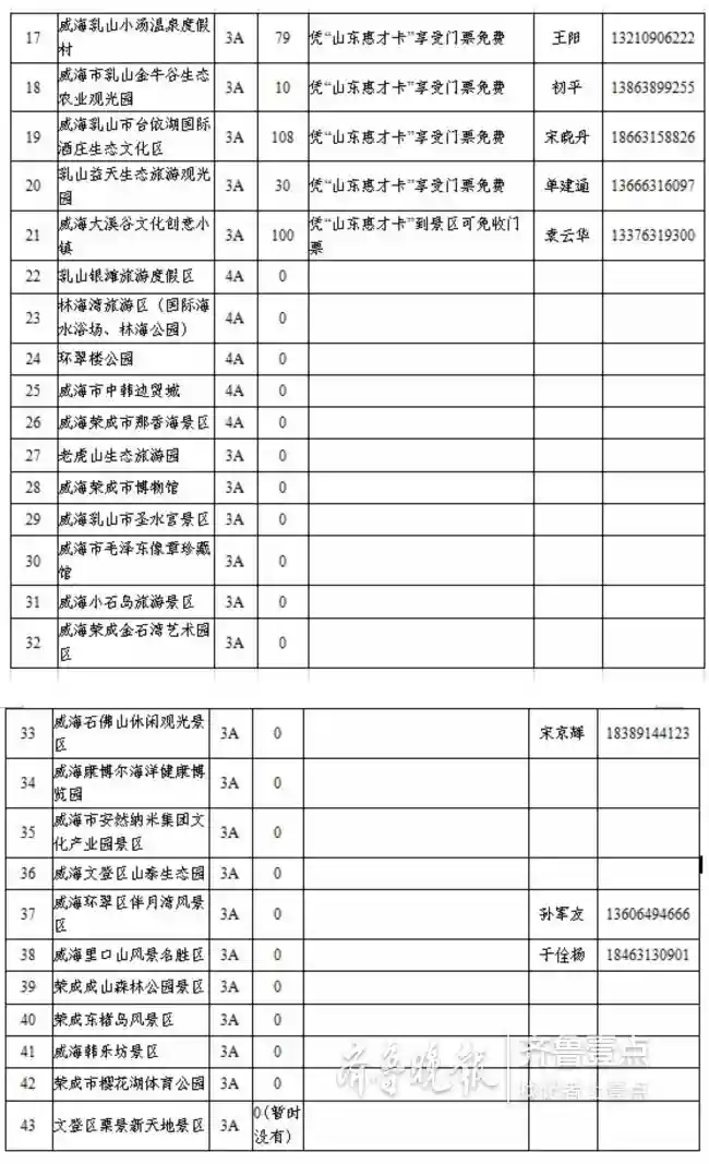 二、高层次人才免费进入省内3A级以上景区及森林公园名单
