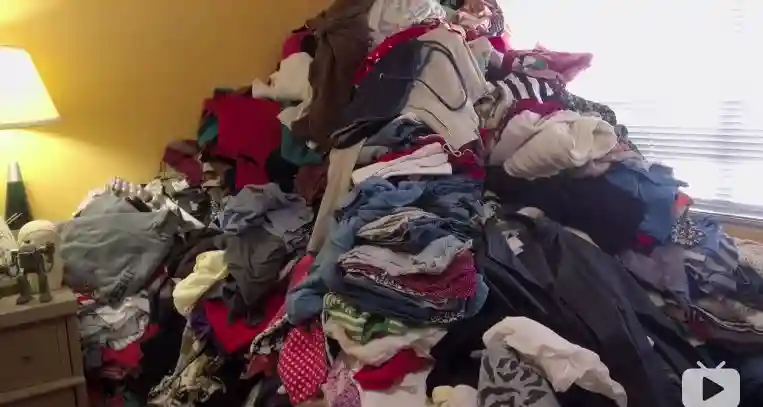 不知不觉间,她的衣服多到什么程度呢?当麻理惠要求她把家里的衣服全都找出来堆在一起,衣服整整堆成了一座山。