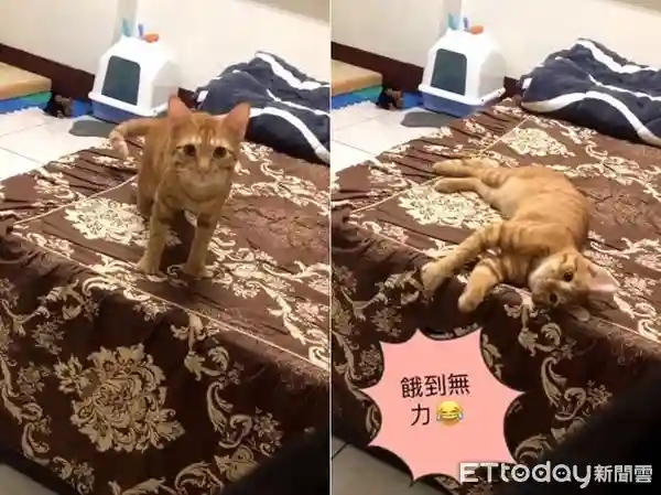 这只猫根本是个活体翻译机吧!高雄饲主徐瑾瑾家中有只超爱讲话的小橘猫「米啾」,搞威的它每天都会跟妈妈对话好几轮,这天米啾看到马麻终于下班回家后,就开始站在床上说话说不停,因此她立刻拿起手机录影,没想到竟意外录下毛孩说出「妈妈」、「我饿」,接着还上演饿到无力的搞笑戏码。