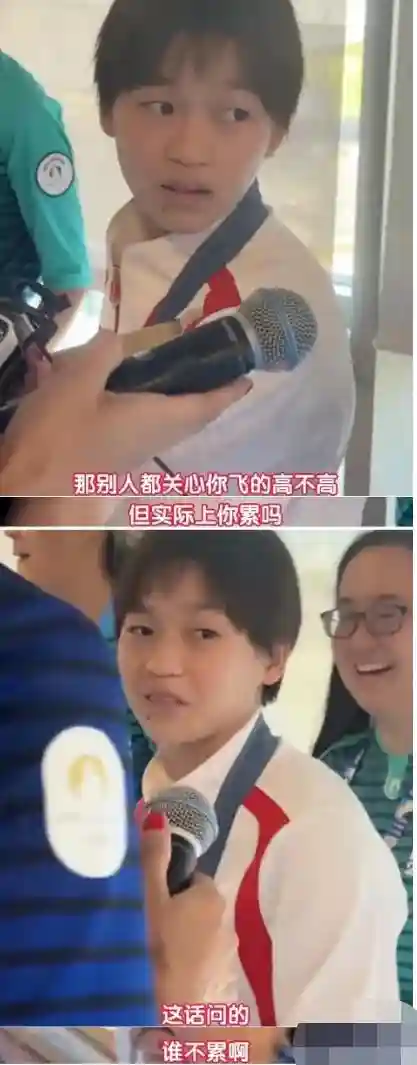 还有记者试图灌鸡汤的,“别人都关心你飞得高不高,就我关心你飞得累不累”,被全妹怼:谁不累啊!