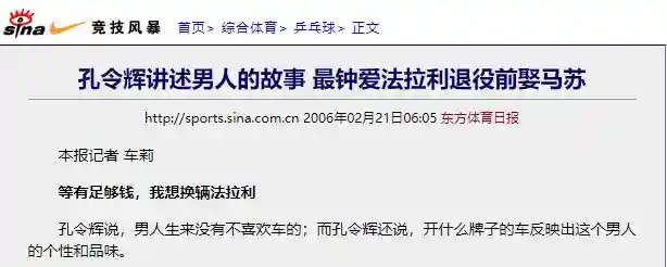就这,酷爱小车的孔令辉还不满足,他居然还想购置500万元以上的法拉利!