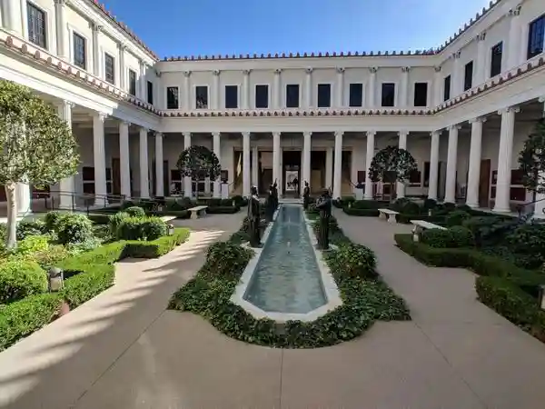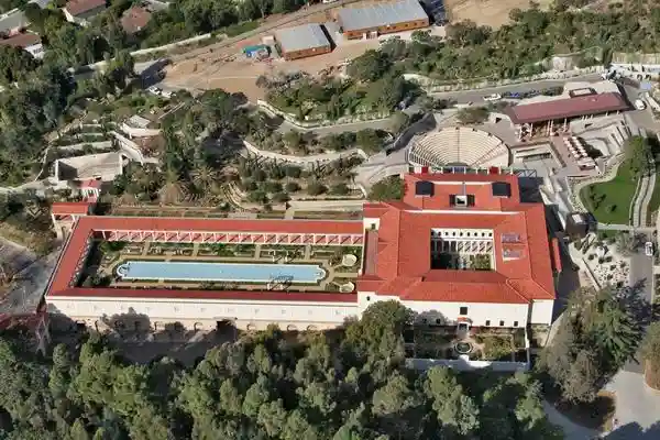 建筑师提出的几种备选方案被盖蒂全盘否决,老头自作主张,决定仿造公元79年与庞贝同遭灭顶之灾的赫库兰尼姆古城中大名鼎鼎的纸草别墅。复古建筑并不稀奇,尤其在加州这有金子的新天地,一轮又一轮仿造不同时代不同地区建筑的潮流比起过去几十年华语娱乐圈重拍武则天和射雕英雄传的热忱有过之而无不及。
