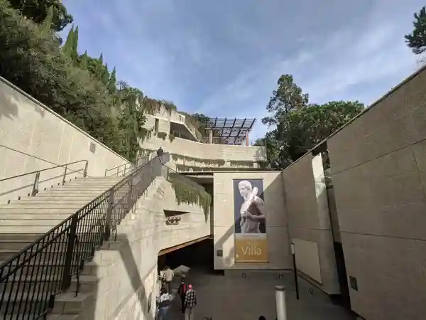 1974年盖蒂别墅落成向公众开放,受到广大游客的喜爱,两千年前的富人豪宅这种噱头谁不好奇呢,何况又跟一座城市被埋葬和发掘的神秘故事联在一起。但新楼只用了十来年改建事宜已经提到日程上。由于停车场藏在后花园地下,游客只能从后院进门,永远看不见别墅正脸。为避免破坏古代园林景观,花园里茶座设在高台上,搞得残疾人喝不上咖啡。馆内没有咨询台没有存包处,电梯太小,厕所隐藏的过于巧妙,凡此种种,无比拧巴。这些年还有一件大事,老盖1976年去世,自己五个儿子一分钱没留,全部身家给了博物馆。盖蒂博物馆一夜之间成为全球艺术展馆首富,开始飞速扩张,先是在城郊另处买地,耗资超过十亿美元建成洛杉矶的新地标盖蒂中心,接下来,耗时十二年,造价近三亿美元的盖蒂别墅改建工程也在2005年结束。曾经在自己家里装投币电话供来客使用的盖老泉下有知一定死不瞑目。