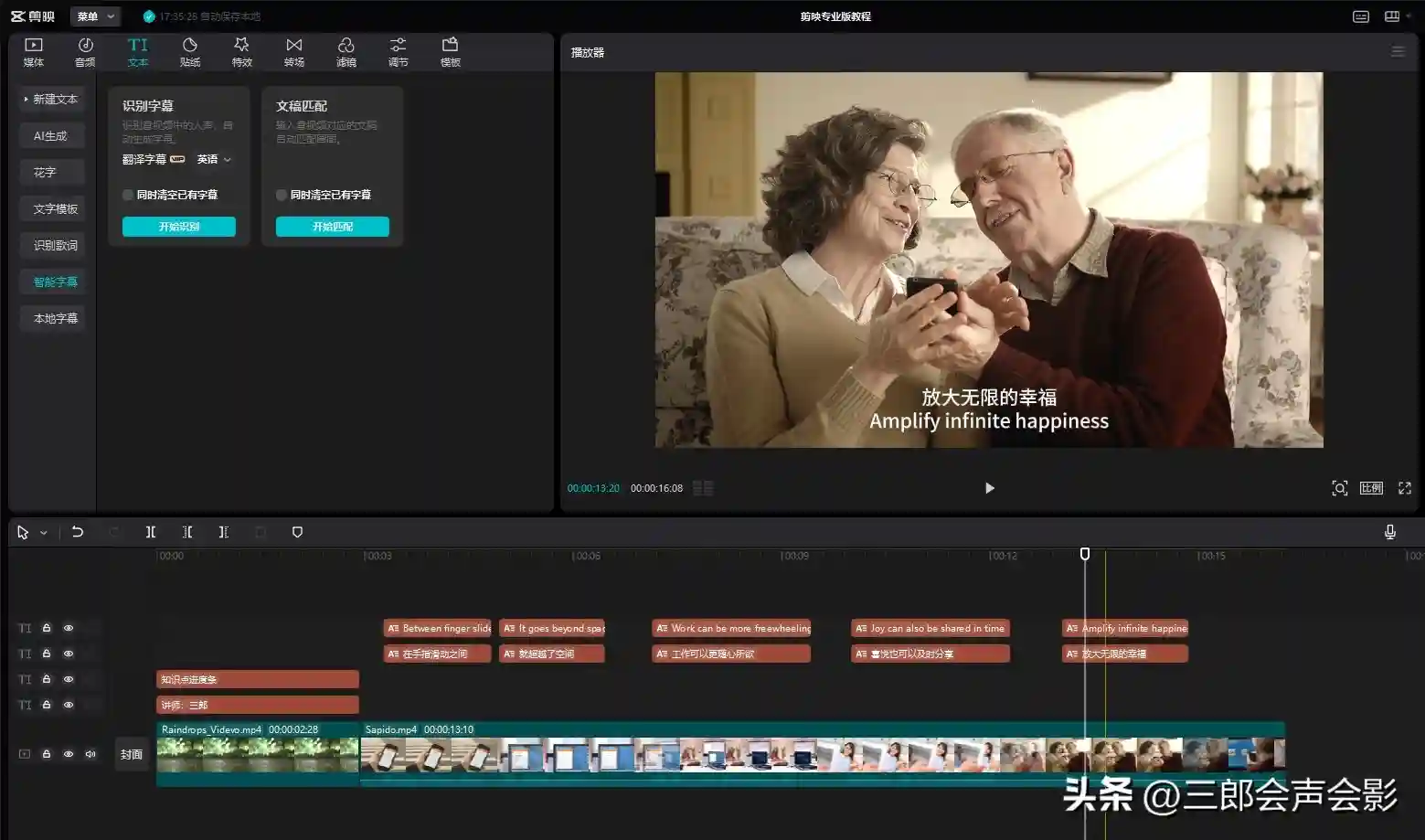 以上就是三郎老师给大家介绍的“剪映专业版识别字幕并自动翻译制作双语效果”相关知识,希望对你学习这款软件有所帮助!